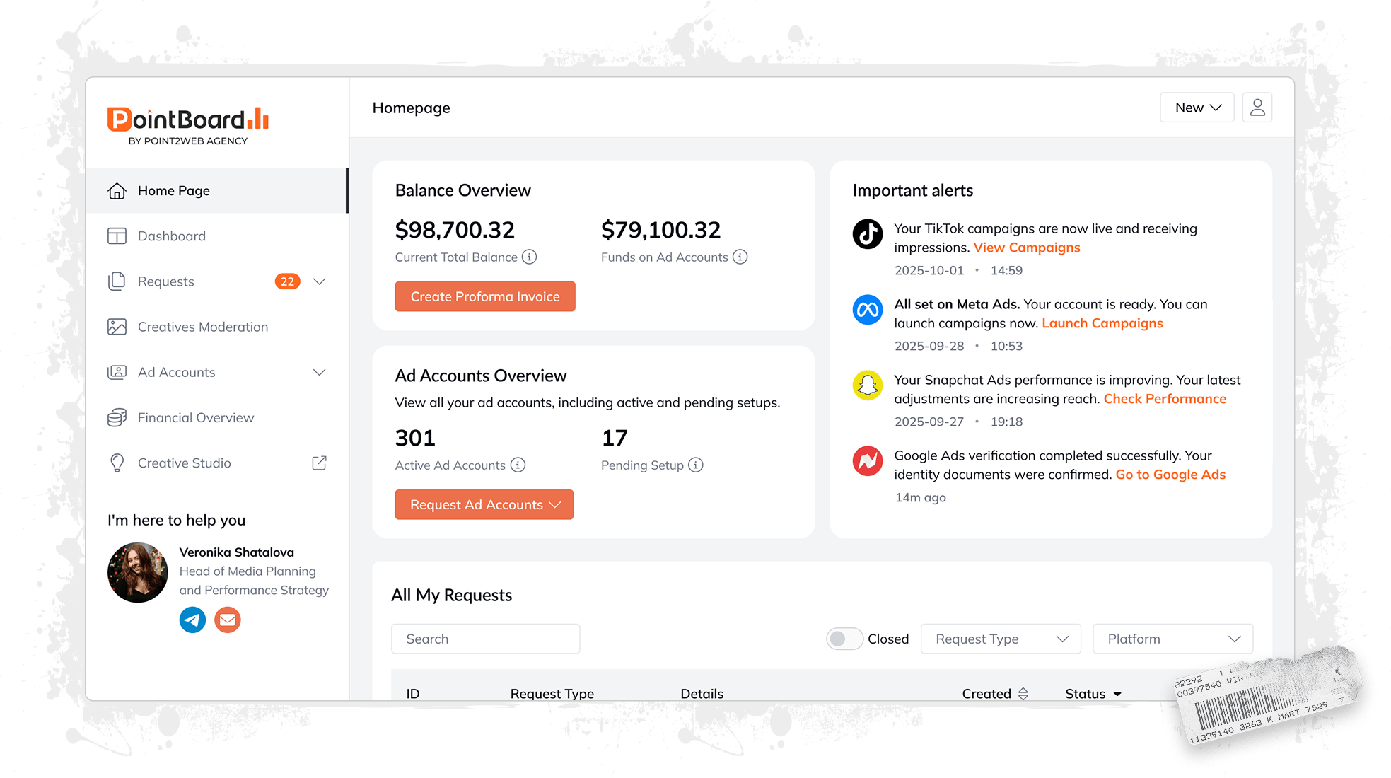 PointBoard is your all-in-one platform for seamless ad account control, budget management, compliance checks, and real-time performance insights. Save time, cut manual effort, and focus on growth